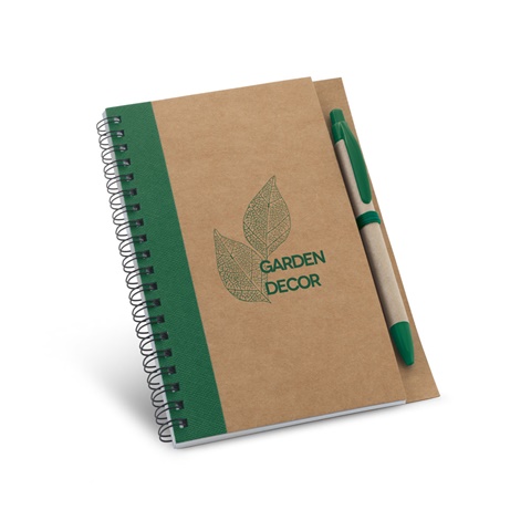 Blok se spirálovou vazbou B6 se 120 stranami bez linek z recyklovaného papíru a tvrdými deskami. Poznámkový blok zahrnuje držák pera a kuličkové pero.130 x 177 mm Modrá náplň, Produkt šetrný k životnímu prostředí, Formát B6, Nelinkované listy