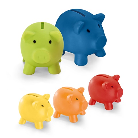 PIGGY. PVC pokladnička prasátka, světle modrá
