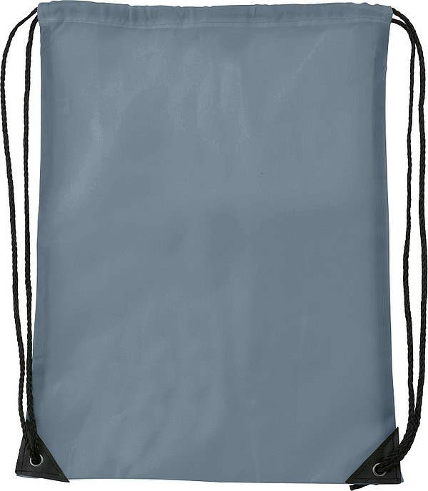 Stahovací batoh s vyztuženými rohy a nylonovou šňůrkou. Mateiál 210D polyester. Rozměry: 41 × 34,5 × 0,2 cm.