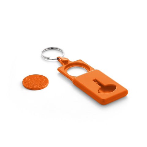 BUS. Klíčenka s žetonem ve tvaru mince do vozík v supermarketu, oranžová