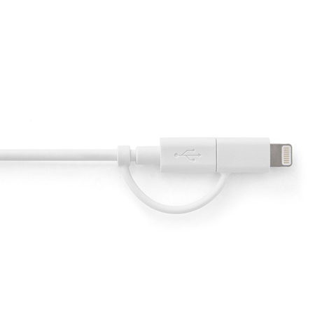 USB kabel 3 v 1 vhodný pro nabíjení mobilních zařízení. Disponuje mikro USB konektorem a Lightning® adaptéry (certifikované MFI) a USB typ C. Dodáváno ve vaku EVA se zipem.Kabel: 1020 mm | Pouzdro: ø75x36 mm