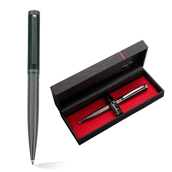 Broušené mosazné tělo s lakovanou povrchovou úpravou, černý plastový úchop v kombinaci s doplňky pokovenými chromem, s modrou náplní. Baleno v dárkové krabičce.Doporučená technologie tisku: tampontisk T3, laser L1. Maximální velikost tisku: 35 × 7 mm. Rozměry: pero 13,5 × 1 cm, krabička 17,5 × 3,5 × 5 cm. Kartonové množství: 40