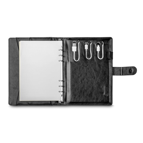 Organizér A5 z PU s poznámkovým blokem se 70 stránkami a přenosnou baterií 4000 mAh. Tento ogranizér je vhodný pro nabíjení mobilních telefonů (kompatibilních s Androidem a iOs) a tabletů. Obsahuje nabíjecí kabel USB / micro USB a iPhone 5-7'170 x 240 mm
