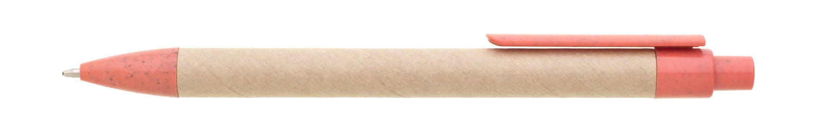 Propiska z recyklovaného papíru a červenými doplňky s podílem slámy. Kolekce SAVE THE NATURE. Potisk T1+ (FINE) dle ceníku.
