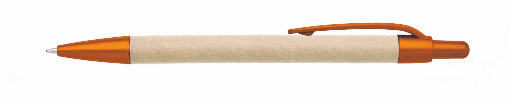 Tělo propisky VIRON METALIC je tvořeno papírovým tubusem z recyklovaného papíru a doplněno metalickou oranžovou plastovou špičkou a klipem. Náplň X20, modře píšící. Potisk T1+ (FINE) dle ceníku.