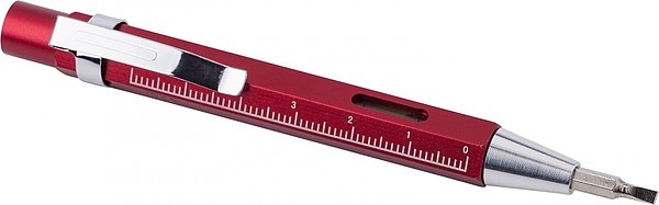 Hliníkový kapesní šroubovák se 4 bity, vodováhou a pravítkem. Doporučená technologie tisku: Laser L1. Materiál: Hliník, chromovaná ocel. Rozměry: 1,2 x 1,2 x 11,6 cm. Kartonové množství v ks: 200
