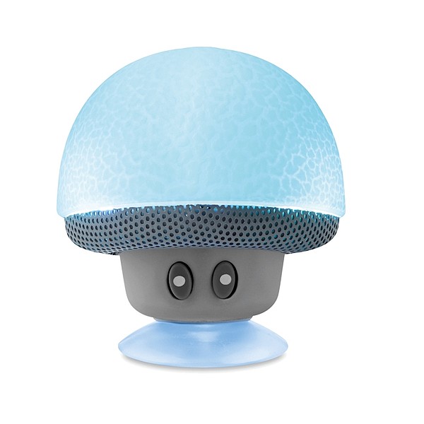 Plastový 5.0 reproduktor s přísavkou ve tvaru houby. Včetně baterie 180 mAh a nabíjecího kabelu USB. Výkon: 4 Ohm, 5V a 3W. Hrací doba přibližně 2h. Materiál: Plast. Rozměry: O5,5X5 CM. Kartonové množství: 100. Doporučená technologie tisku: Tampontisk T3
