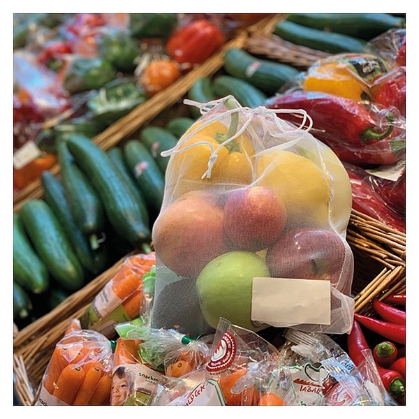Praktický a ekologický stahovací sáček na ovoce a zeleninu z recyklovaného PET, který lze v případě potřeby i vyprat. Opatřen štítkem pro umístění samolepky. Rozměry: 27,5 × 0,1 × 32 cm.