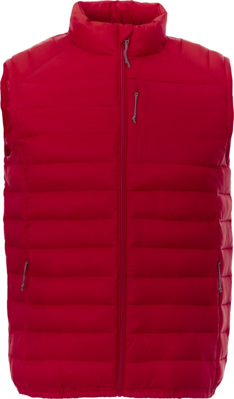 Pohodlná pánská vesta s izolační vrstvou. Možnost potisku na vnitřní straně zad. Náprsní kapsa a kapsy na ruce na zip. Elastický lem. Přední reverzní zip s příjemným gripem. Šatnové poutko. Materiál: 100% nylonu, 380T s hladkou povrchovou úpravou 38 g/m2.