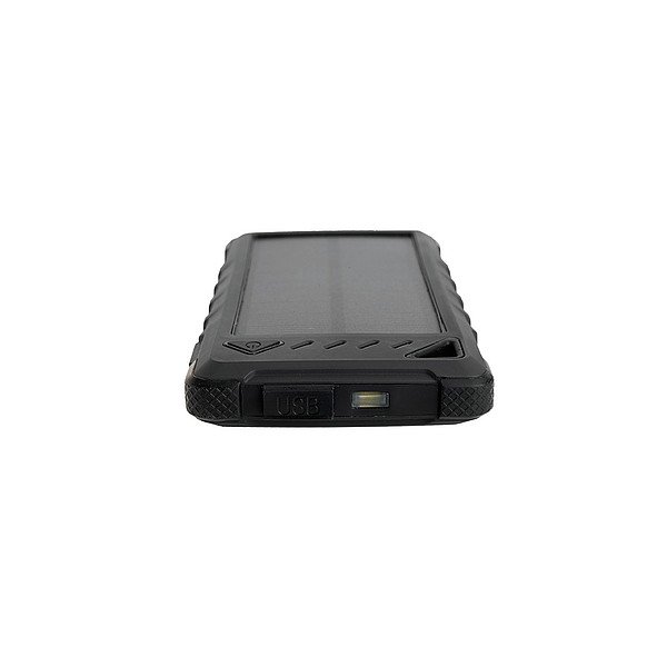 Voděodolná solární powerbanka značky Schwarzwolf, která obsahuje vestavěnou lithium-polymerovou baterii o kapacitě 8000 mAh. Vstup DC5V/2A, výstup DC 5V/1A+2,1A. Powerbanka je odolná proti prachu, dešti, stříkající vodě a díky svému pevnému složení a gumovým rohům je také odolná proti nárazům. Solární panel slouží jako sekundární zdroj pro průběžné dobíjení powerbanky nebo pro nouzové nabití telefonu. Jeho výkon je 120 mAh. Tedy 10h na slunci = kapacita nabití PB 1200mAh. Záleží samozřejmě na světelných podmínkách. Dále obsahuje nouzové LED světlo, 4 indikátory nabití s modrým podsvícením, 2 USB porty a 1 Micro USB port. Dodáváno s USB kabelem o délce cca 23 cm. Baleno v dárkové krabičce Schwarzwolf. Materiál: silikonový gel, ABS+PC, gumový lak. Doporučená technologie tisku: uv tisk UV3. Maximální velikost tisku: 40 × 10 mm. Rozměry: 14 × 7,5 × 1,7 cm. Uhlíková stopa: gCO2 e36177.