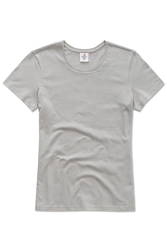 Dámské tričko s krátkým rukávem, dvojité švy na rukávech a spodním lemu, boční švy, šev za krkem podšitý páskou. 100% přadená prstencová bavlna, 155 g/m2. Doporučená technologie tisku: sítotisk S2, S3, výšivka.