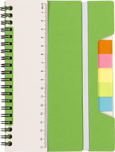 TREVIR Kroužkový zápisník s pravítkem a memo lístky, zelená