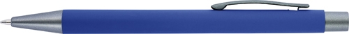 Kuličkové pero s barevným pogumovaným povrchem a tmavě šedými doplňky. Pod barevným tělěm má pero lesklý povrch, díky kterému na něm bude zářit vylaserovné logo. Modrá náplň. Rozměry: 13,8 × 0,9 cm.