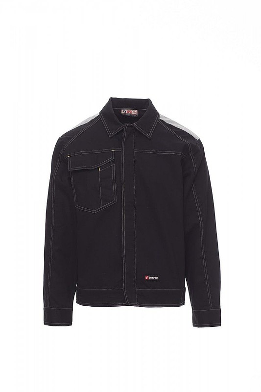 Lehká bunda s kontrastním prošitím a reflexními pruhy na ramenou a zádech. Vyštíhlený džínový střih a přední zapínání na skryté plastové knoflíky. Bunda má kapsu na smartphone, odnímatelnou visačku na kartu a zavírací pouzdro na jmenovku, očko na tužku na kapse na hrudi s klopou na suchý zip. Zapínání na zápěstí na knoflík a stahovací pas na suchý zip. Vyrobeno ze 100% bavlny – Sanford twill, 260g. Velikosti: XS–5XL