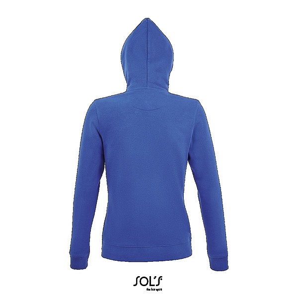 Dámská mikina SOLS s kapucí a celopropínacím zipem. Vnější strana mikiny je 100% bavlna 280 g a vnitřní strana je hladký fleece – 80% žebrovaná bavlna a 20% polyester. Mikina má dvě přední kapsy, podšité švy na krku a ve stejném tónu šňůrky u kapuce. Kartonové množství: 25