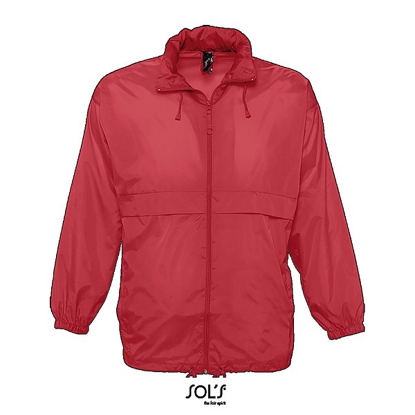 Unisexová lehká větrovka SOLS z materiálu s úpravou do lehkého deště – 100% polyamid 210T. Větrovka má kapuci, která se dá skrýt do límce, dvě boční kapsy se zipem a dvě větrací kapsy na hrudi. Konce rukávů mají gumičku a spodní část lze stáhnout šňůrkami. Kartonové množství: 50