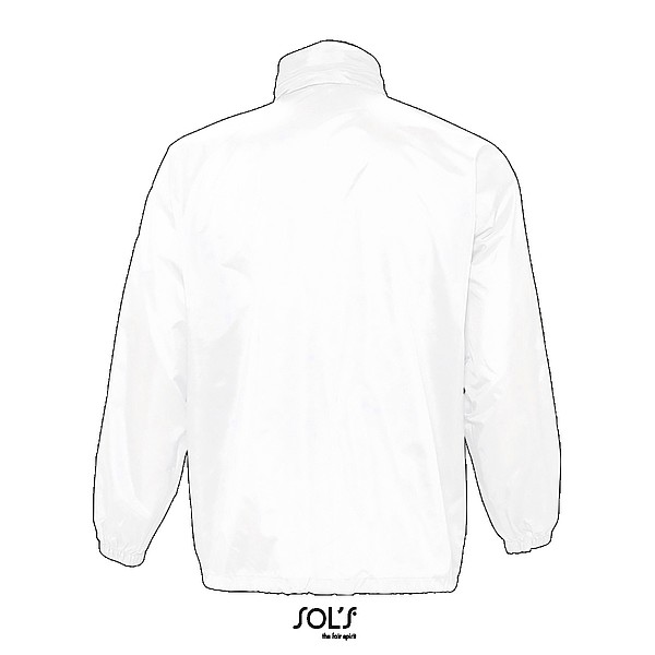 Unisexová lehká větrovka SOLS z materiálu s úpravou do lehkého deště – 100% polyamid 210T. Větrovka má kapuci, která se dá skrýt do límce, dvě boční kapsy se zipem a dvě větrací kapsy na hrudi. Konce rukávů mají gumičku a spodní část lze stáhnout šňůrkami. Kartonové množství: 50