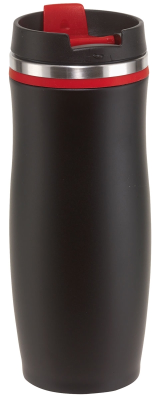 Nerezový cestovní termohrnek o objemu 380 ml. Je celý z nerezu a má plastové víčko s klikacím otvíráním části na pití. Spodní část je opatřena gumou proti uklouznutí. Rozměry: O 6,7 × 18,5 cm.