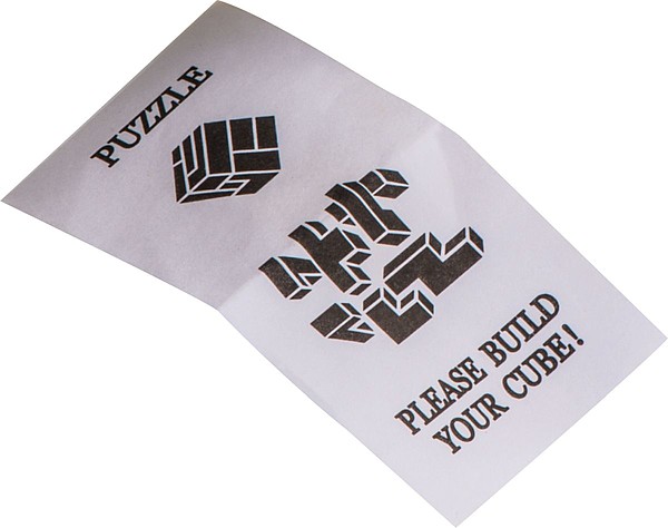 Rozměr: hlavolam 4,5 × 4,5 × 4,5 cm, pytlík 15,5 × 10 cm