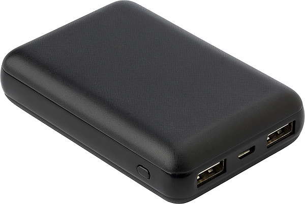 Powerbanka s kapacitou 10 000 mAh se dvěma výstupy. Vstup DC 5 V/1.5 A, výstup 5 V/1 A a 2.1 A. Součástí je i LED indikátor nabití a USB kabel. Materiál ABS. Doporučená technologie tisku: tampontisk T2, UV tisk UV2. Maximální velikost tisku: 45 × 45 mm. Rozměry: 9 × 6,4 × 2,3 cm. Cena nezahrnuje recyklační poplatek. Kartonové množství v ks: 40.