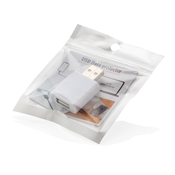 USB data blokátor. Chrání před krádeží dat při nabíjení na veřejných místech. Je kompatibilní se všemi mobilními zařízeními a funguje na všech USB portech. Vyrobeno z ABS. Doporučená technologie tisku: tampontisk T2. Maximální velikost tisku: 20 x15 mm. Rozměry: 4,1 × 2,6 × 1,1 cm. Cena nezahrnuje recyklační poplatek. Kartonové množství v ks: 500.