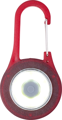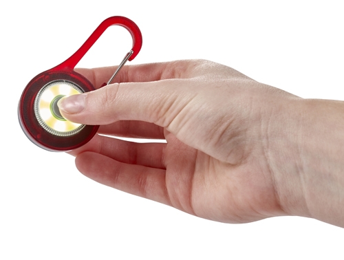 Plastová karabinka s COB LED světlem. Obsahuje spínací tlačítko pro regulaci světla: jasné, méně jasné, blikající. Doporučená technologie tisku: tampontisk T3. Maximální velikost tisku: 10 x 10 mm. Rozměry: 8 x 4 x 1,5 cm. Cena nezahrnuje recyklační poplatek. Poznámka: Baterie jsou součástí balení. Kartonové množství: 400
