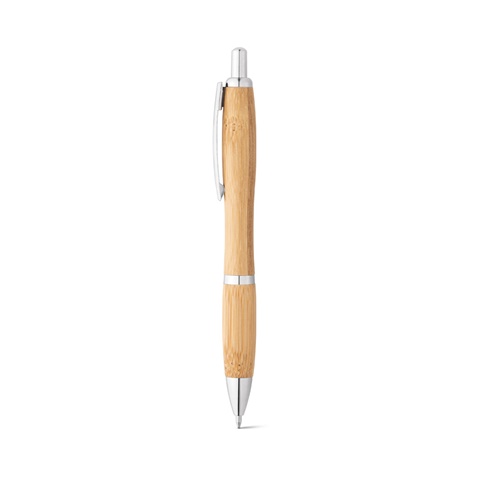 NICOLE. Bambusové kuličkové pero s klipem a kovovými detaily, přírodní