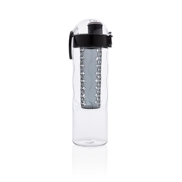 Praktická láhev z odolného moderního tritanu s designovými prvky medových pláství pro pohodlné pití jednou rukou. Otevírání víčka pomocí uzamykatelného mechanizmu na stlačení, které chrání proti náhodnému vylití. Včetně infuseru pro zdravé osvěžení nápojů ovocem a plastového poutka pro nošení. BPA free, neabsorbuje pachy. Objem 700 ml. Registrovaný design®. Rozměry: o 8,6 × 24,8 cm.