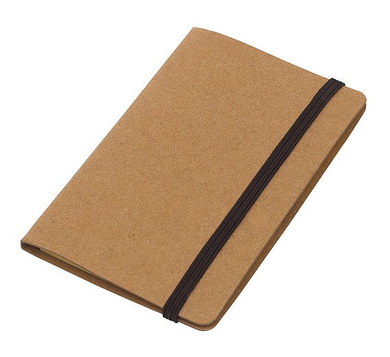 Sada samolepícího bločku a barevných značkovačů v papírovém obalu se zavíráním na gumičku. Uvnitř je kapsička na vizitky. Vyrobeno z recyklovaného materiálu. Rozměry: 10,5 × 6,8 × 0,5 cm.