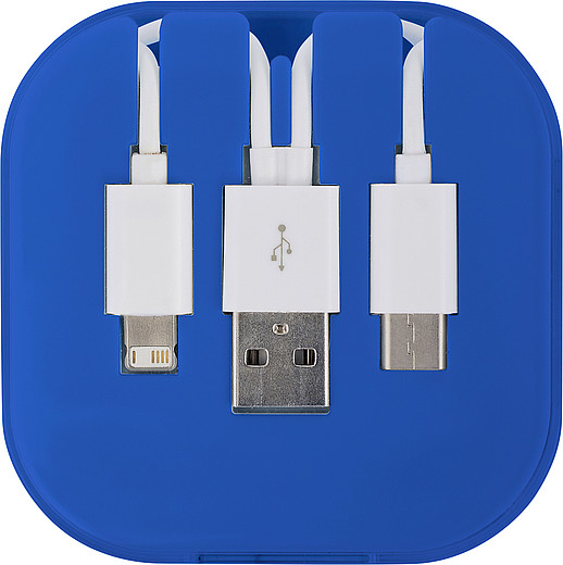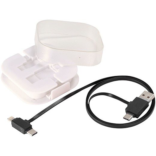 Nabíjecí kabel 4v1 v plastovém obalu. Má 2 koncovky typu C, 1 koncovku typu USB A a lightning. Umožňuje nabíjení i přenos dat. Doporučená technologie tisku: tampontisk T2. Maximální velikost tisku: 50 x 50 mm. Rozměry: 7 × 7 × 1,8 cm. Cena nezahrnuje recyklační poplatek. Kartonové množství v ks: 200.