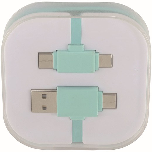 Nabíjecí kabel 4v1 v plastovém obalu. Má 2 koncovky typu C, 1 koncovku typu USB A a lightning. Umožňuje nabíjení i přenos dat. Doporučená technologie tisku: tampontisk T2. Maximální velikost tisku: 50 x 50 mm. Rozměry: 7 × 7 × 1,8 cm. Cena nezahrnuje recyklační poplatek. Kartonové množství v ks: 200.