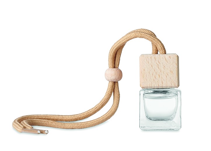 Stylový osvěžovač vzduchu do auta naplněný éterickým olejem. Nádobka je vyrobena ze skla a bukového dřeva, opatřena hnědou šňůrkou k zavěšení. Až bude osvěžovač prázdný, naplníte jej vlastní oblíbenou vůní. Objem 5 ml. Rozměry: 2,7 × 2,7 × 4,8 cm.