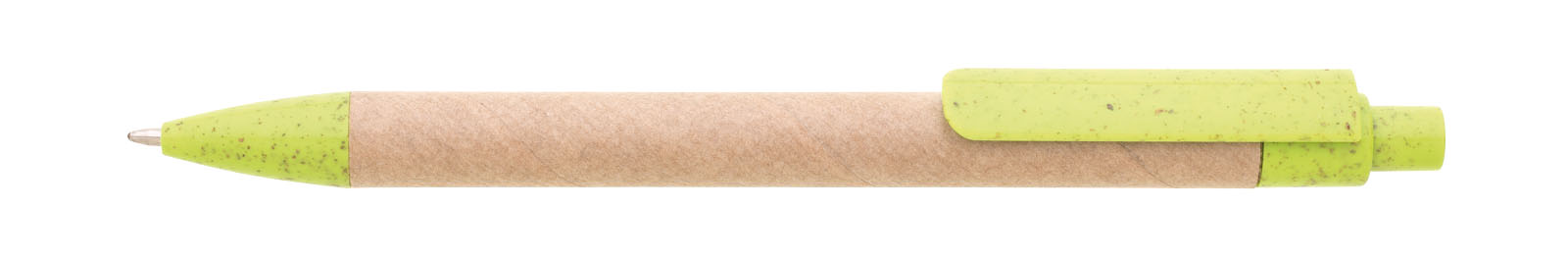 Papírová propiska s víčkem ze stejného materiálu. Náplň modře píšící, X20 - jednorázová.
