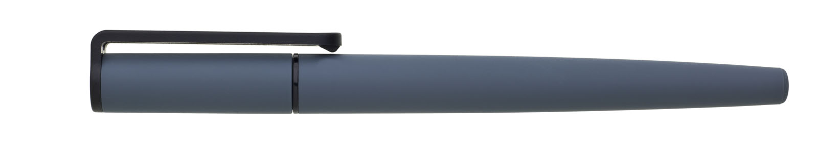 Gelová propiska s víčkem, soft povrch v šedé barvě, černý designový klip. Náplň gelová velkokapacitní.
