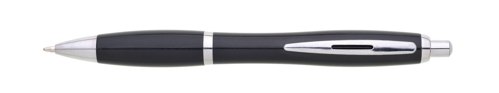 OSTA černá plastová propiska s neprůsvitným tělem a chromovými doplňky. Náplň velkoobsahová, modře píšící.